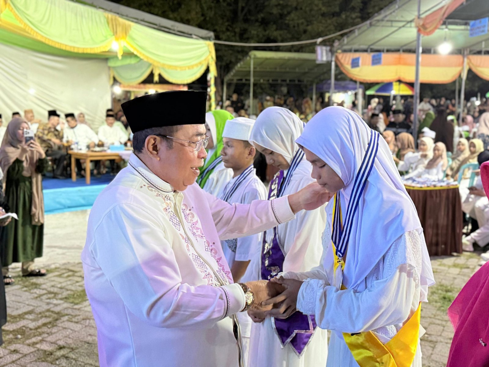 Rangkaian acara ditutup dengan prosesi pengalungan gordon secara simbolis oleh Wali Kota kepada perwakilan wisudawan. Wali Kota Adhan berharap para santri yang telah dikhatamkan dapat terus belajar, mengamalkan ajaran Al-Qur’an, serta menjadi teladan di lingkungan keluarga dan masyarakat. (Rls)