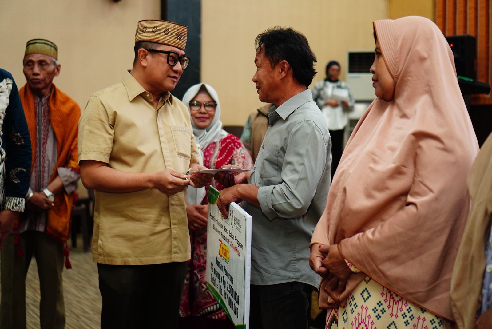 Penyaluran bantuan kepada pelaku UMK dirangkaikan dengan pentasyarufan dana zakat kepada 380 asnaf. Tiap penerima mendapat Rp 284.000.