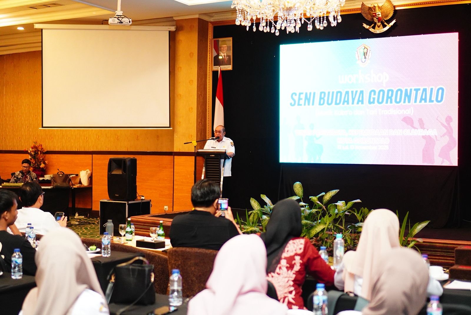 3MEDIA, GORONTALO – Wali Kota Gorontalo, Adhan Dambea memberikan apresiasi kepada Dinas Pariwisata, Pemuda dan Olahraga (Disparpora) Kota Gorontalo. Apresiasi disampaikan orang nomor satu di Kota Gorontalo ini, lantaran Disparpora melaksanakan sebuah kegiatan yang dapat melestarikan tradisi dan budaya Gorontalo lewat peningkatan kapasitas para pelatih alat musik Koko’o dan Tarian Dana-Dana, yang dikemas dalam kegiatan Workshop Seni Budaya Gorontalo, Rabu (13/11/2025) di Balroom Hotel Grand Q.