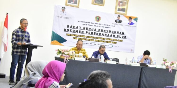 3MEDIA, GORONTALO – Penjabat (Pj) Wali Kota Gorontalo Ismail Madjid menghadiri rapat kerja penyusunan dokumen perencana badan layanan umum daerah (BLUD) di Rumah Sakit (RS) Aloei Saboe, Sabtu (5/10/2024).