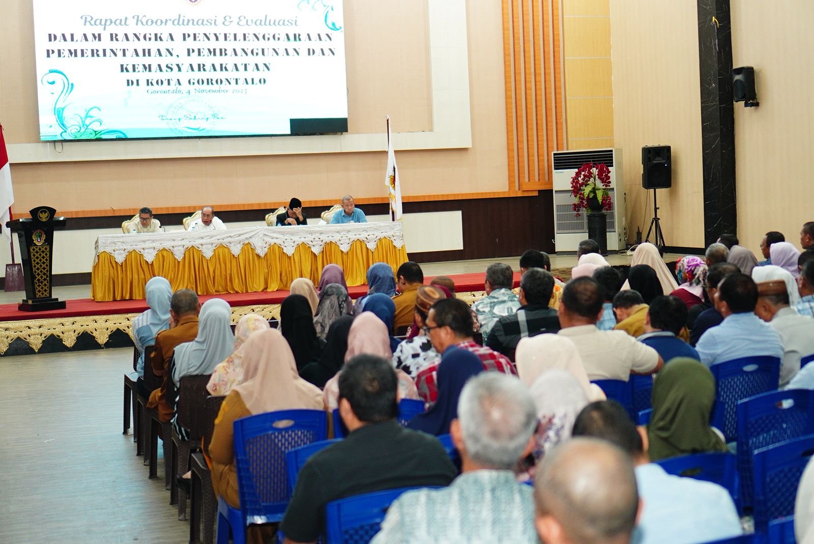 3MEDIA, GORONTALO – Wali Kota Gorontalo, Adhan Dambea kembali mengumpulkan pejabat eselon III dan lurah se-Kota Gorontalo untuk mengikuti rapat koordinasi dan evaluasi (Rakorev) penyelenggaraan pemerintahan, pembangunan dan kemasyarakatan, Selasa (4/11/2025) malam, di Bandhayo Lo Yiladia.