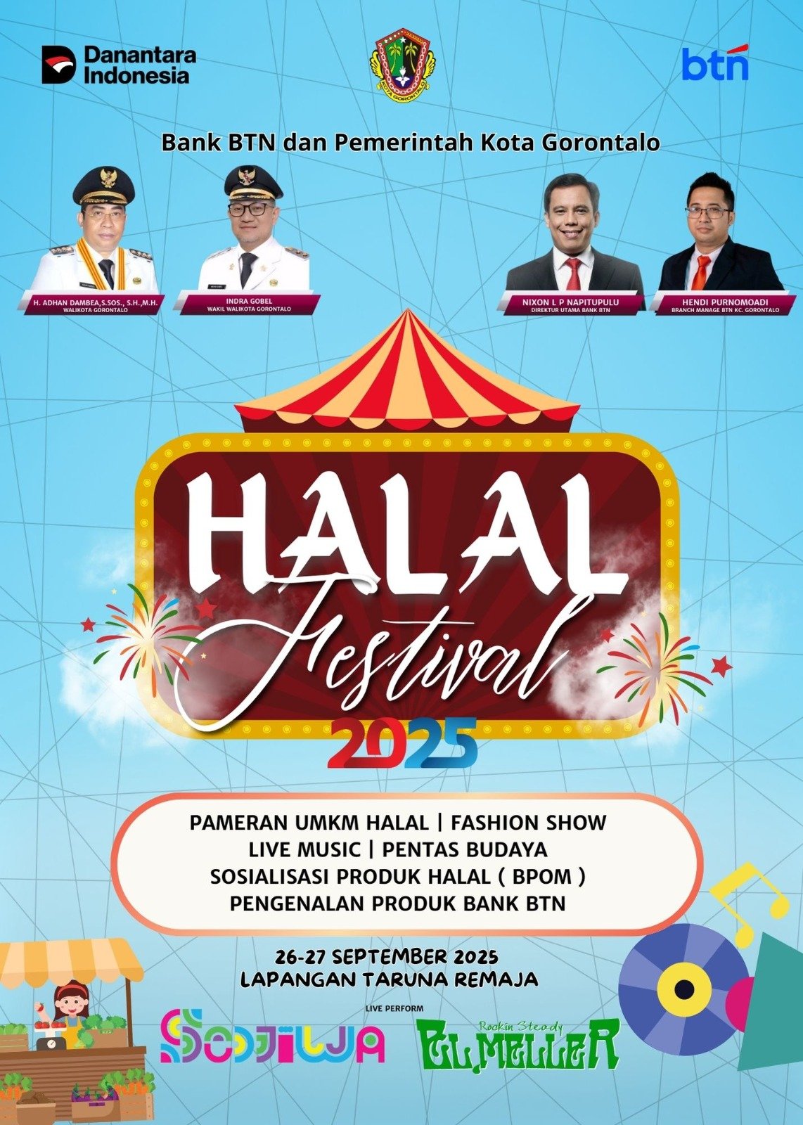 3MEDIA, GORONTALO – Jika tak ada aral melintang, akhir pekan nanti akan ada Halal Festival yang akan dipentaskan di Lapangan Taruna Remaja. Kegiatan yang dirancang untuk mendorong pertumbuhan ekonomi kreatif sekaligus memperkuat ekosistem industri halal di daerah ini, dilaksanakan Pemerintah Kota Gorontalo bekerjasama dengan Bank Tabungan Negara(BTN).