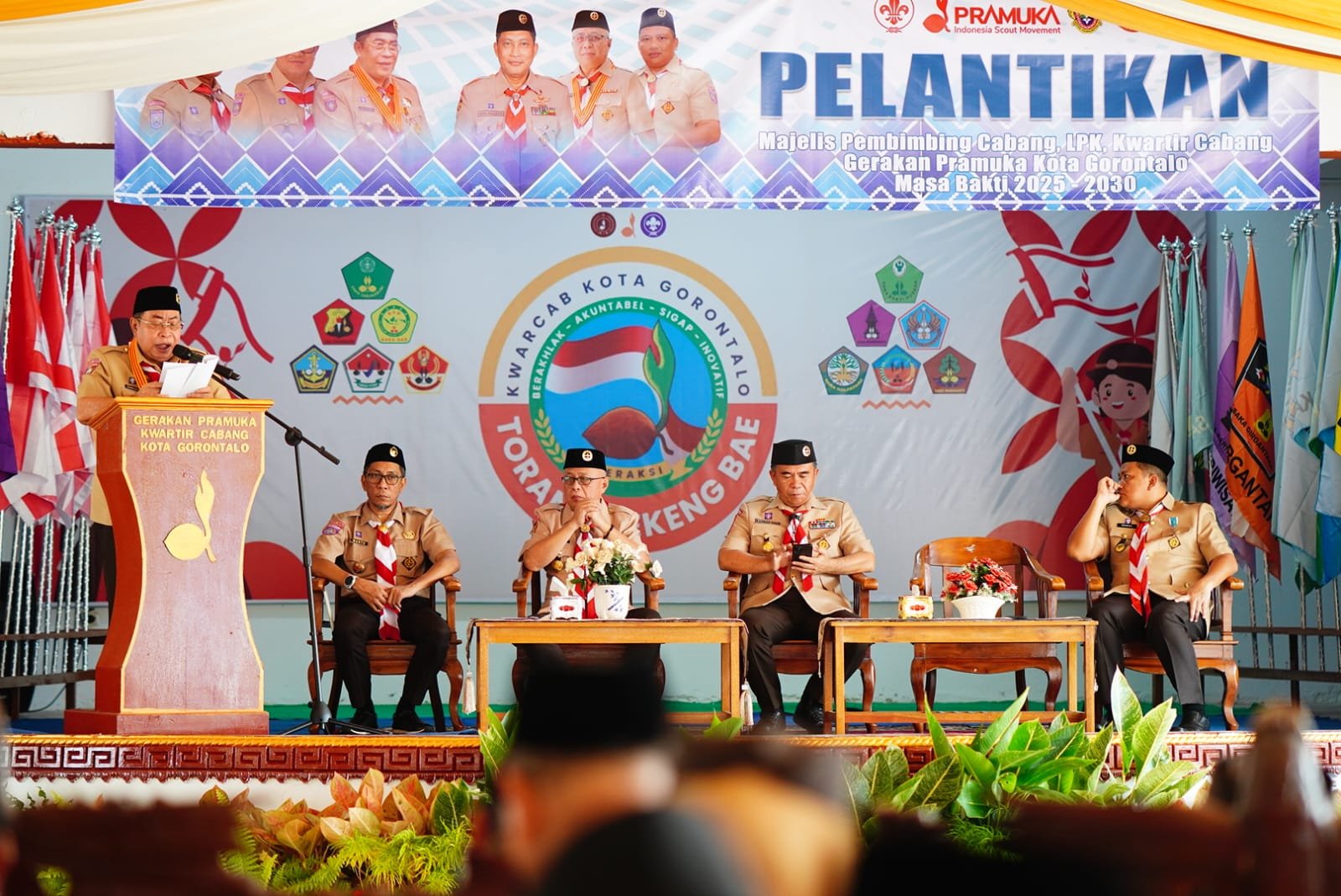 “Pelantikan ini bukan sekadar seremonial belaka, melainkan momentum untuk memantapkan organisasi serta membangkitkan kembali gairah kegiatan kepramukaan di Kota Gorontalo,” ujarnya. Ia menambahkan bahwa gerakan Pramuka memiliki peran strategis dalam menyiapkan generasi muda yang beriman, berakhlak mulia, disiplin, serta memiliki semangat kebersamaan dalam kehidupan bermasyarakat.