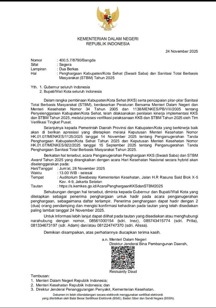 Penghargaan KKS Swasti Saba Padapa sendiri merupakan tanda penghargaan dari Kementerian Kesehatan RI untuk kabupaten/kota yang berhasil menciptakan wilayah yang sehat melalui berbagai program dan tatanan yang terintegrasi. (Rls)