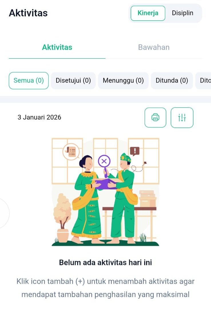 II. Untuk Laporan Aktivitas, Sementara Bisa Menggunakan/Memilih Jenis Aktivitas yang Sudah Ada (Sesuai/serupa) dan Menambahkan Penjelasan Detail pada Kolom Keterangan Aktivitas, Namun Jika Jenis Aktivitasnya Belum Ada dalam Aplikasi dapat Berkoordinasi/Mengusulkan Penambahan Jenis Aktivitas ke Bagian Organisasi Selaku Admin Pengelola Daftar Aktivitas untuk Mendapatkan Penetapan Jenis Aktivitas Beserta Standar Waktu Aktivitas.