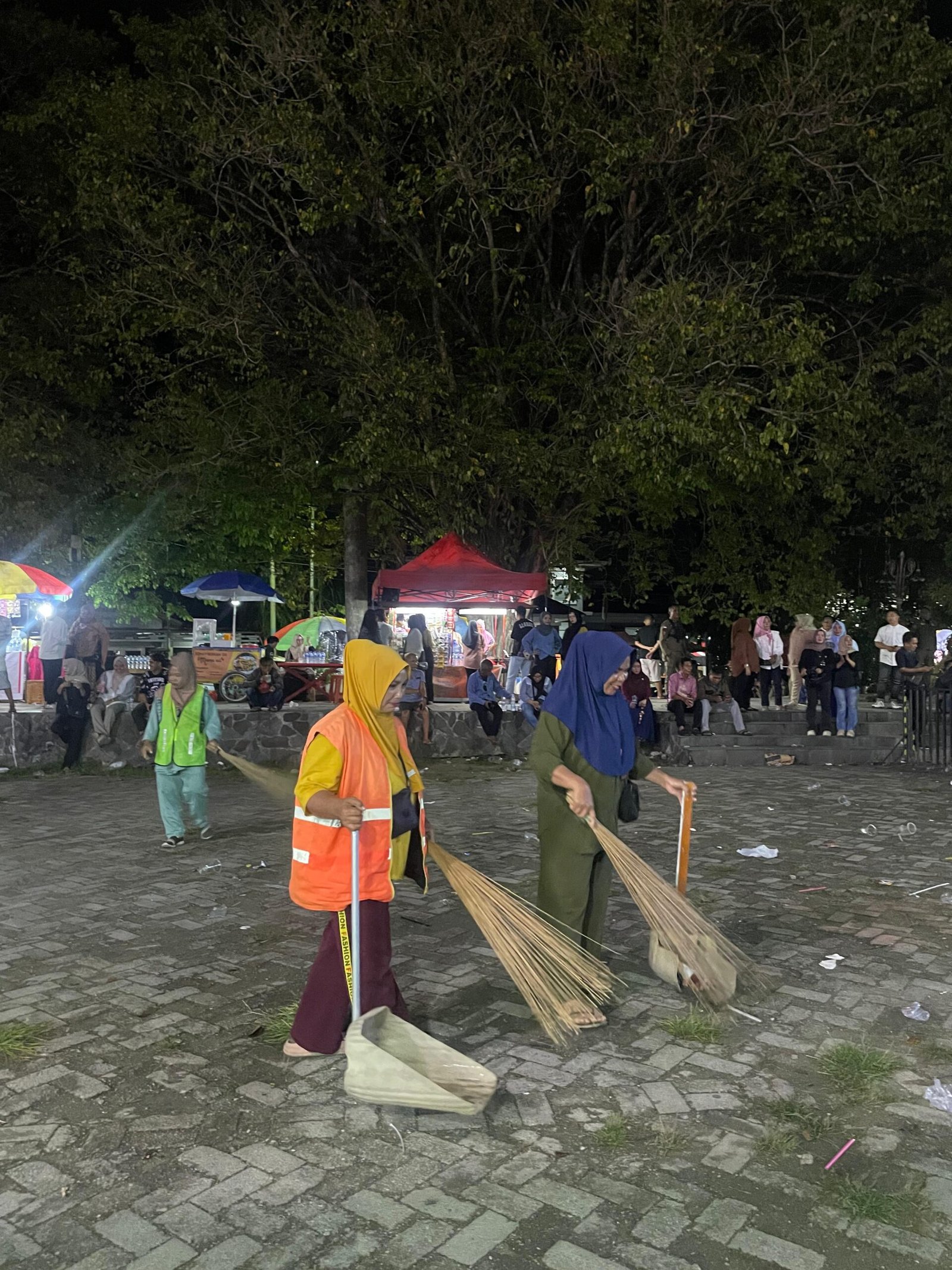 Dimana pantauan pewarta, sebanyak lima petugas kebersihan langsung turun membersihkan area Lapangan Taruna Remaja tak lama setelah artis religi nasional, Hadad Alwi yang memeriahkan kegiatan itu, turun dari panggung.