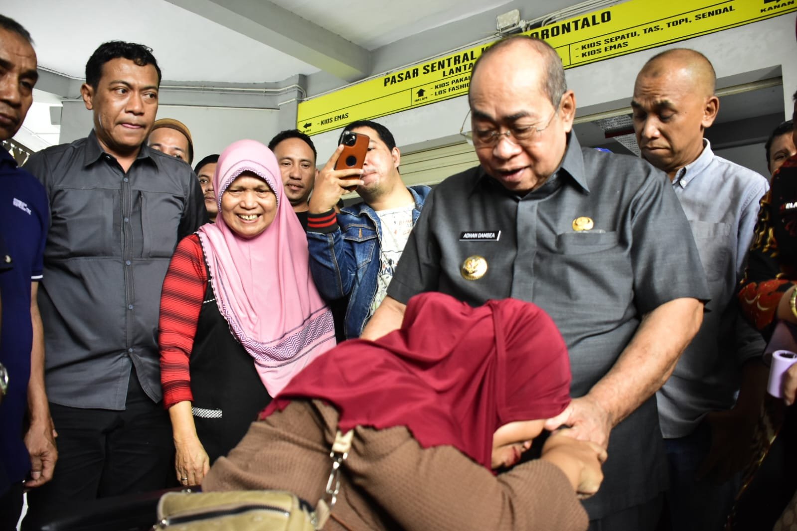 Ajudan langsung bergegas menuju Ibnu Sina menggunakan mobil. Sementara Wali Kota Adhan menunggu di lantai I. Melihat ada Wali Kota Adhan, pedagang berkumpul mengitarinya. Beberapa dari mereka bertanya-tanya, ada apa orang nomor satu di Kota Gorontalo itu berdiri cukup lama di Pasar Sentral.