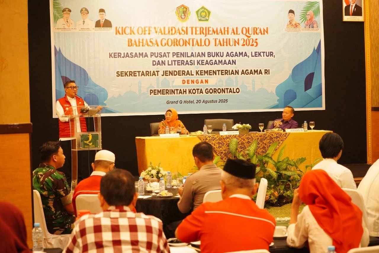 3MEDIA, GORONTALO – Kerjasama antara Kementerian Agama (Kemenag) RI dengan Pemerintah Kota Gorontalo terkait terjemahan Al-Qur’an langsung ditindak lanjuti. Hal itu bisa dilihat dengan digelarnya kick off validasi terjemah Al-Qur’an dalam Bahasa Gorontalo, yang resmi dibuka oleh Wakil Wali Kota Gorontalo, Indra Gobel, Rabu (20/8/2025).